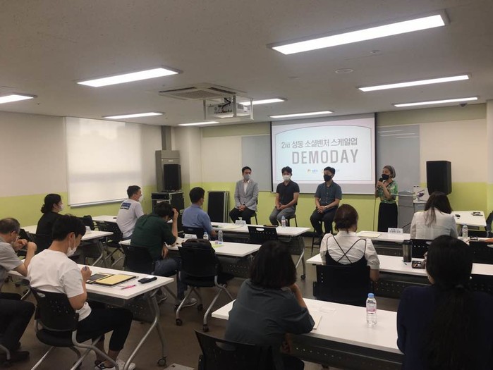 | ▲ 지난 8월9일 개최한 소셜벤처 스케일업 프로그램 데모데이(Demoday) 행사 모습. (사진제공=성동구청) |