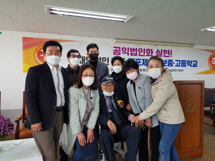 아울러 축사에 나선 “김성복 설립자(88)는 전인생의 모든 것을 자식에게 물려주지 않고 사회환원했다. 그런데 그동안 잘못된 언론으로 인해 의심이나 욕을 먹기도 했지만 흔들리지 않고 법인화를 추진해왔다. 이후 학생과 교사가 주인인 학교로서 민주적 시스템으로 운영될 수 있도록 적극 돕겠다.”고 말했다.