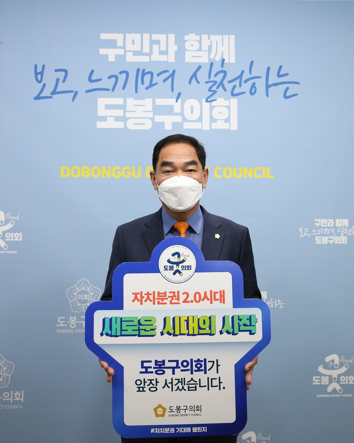 [시민일보 = 여영준 기자] 박진식 서울 도봉구의회 의장은 지난 22일 “자치분권 2.0시대. 새로운 시대의 시작, 도봉구의회가 앞장서겠습니다”라는 각오와 함께 ‘자치분권 기대해’ 챌린지에 동참했다.