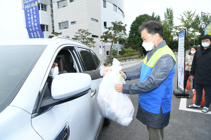 경기 구리시는 최근 3일간 KB금융과 함께 두 번째 재활용품 기증 '구리시 나눠드림 캠페인'을 진행했다. 시 직원들이 재활용할 수 있는 의류, 도서 등의 물품을 ‘굿윌스토어’에 기증하고, 굿윌스토어는 기증물품을 판매한 수익으로 장애인을 고용해 자립을 지원한다. 사진은 시 직원이 드라이브 스루 방식으로 물품을 기증하고 있는 모습. (사진제공=구리시청)