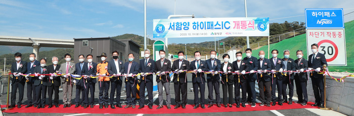 경남 함양군은 19일 오후 광주~대구 고속도로 서함양 하이패스IC 개통식을 가졌다.