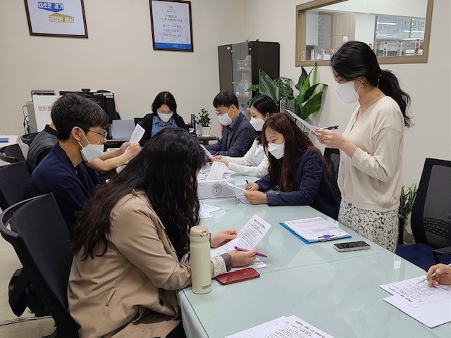 경기 수원시 영통구 망포1동 행정복지센터는 청렴한 공직사회 조성을 위해 28일 전직원을 대상으로 청렴교육을 실시했다. 망포1동은 청렴한 조직문화 확산을 위해 직원 중 한명을 청렴지기로 지정해 운영하고 있다. 사진은 관계자들이 교육에 집중하고 있는 모습. (사진제공=영통구청)