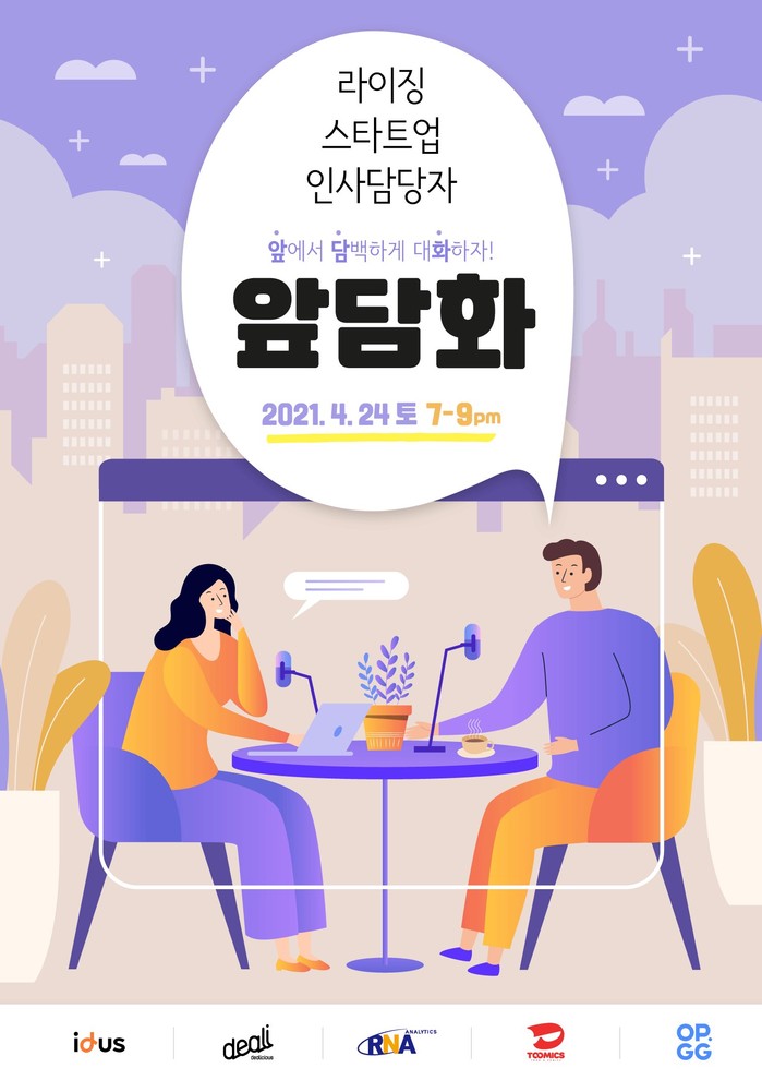 이번 온라인 연합 채용 설명회에 참여하는 기업은 글로벌 금융 솔루션 및 컨설팅 기업인 RNA Analytics와 글로벌 게임 데이터 플랫폼 기업 오피지지 그리고 국내 최대 복합 핸드메이드 플랫폼 기업인 아이디어스를 운영하는 백패커와 패션 B2B 기업인 신상마켓을 운영 중인 딜리셔스 그리고 글로벌 종합 웹툰 서비스 플랫폼 투믹스가 참여한다.