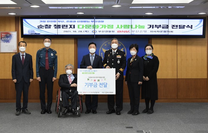 [시민일보 = 여영준 기자] BNK부산은행은 28일 오전 부산경찰청에서 다문화가정 치안을 위해 ‘위드 다!함께 순찰 3Go 챌린지’ 기금 전달식을 가졌다.