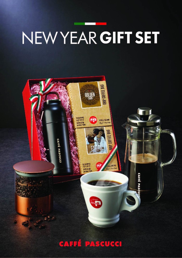 이중 글라스로 견고함을 더한 ‘프렌치프레스’와 파스쿠찌의 원두로 구성된 ‘더블월 프렌치프레스 세트(5만7천원)’, 파스쿠찌를 상징하는 붉은색의 모카포트가 들어간 ‘원두 & 유니크 모카포트 세트(5만원)’, 드리퍼와 서버, 커피 필터, 원두가 함께 구성된 ‘세라믹 드립 세트(5만원)’, 균일한 물줄기로 커피 추출을 도와주는 드립포트에 원두를 함께 넣은 ‘원두 & 드립포트 세트(4만8천원)’, 로즈골드 색상의 글라스 캐니스터(원두 보관통)가 구성되어 있는 ‘원두 & 캐니스터 세트(4만3천원)’ 등 5종이다.