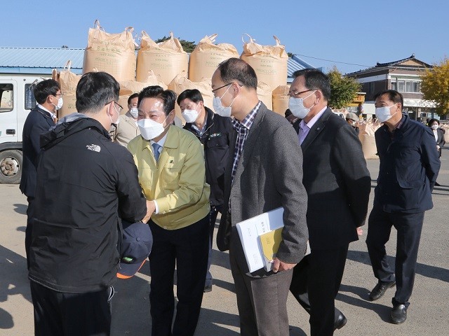 전동평 군수는 “올해는 3차례의 태풍과 기상악화로 영농에 어려움이 많았음에도 불구, 농민들이 영농에 최선을 다해 결실을 맺은 만큼 노고에 감사드린다.”고 격려의 말을 전했다. 아울러, 관계자들에게 코로나19 예방수칙 준수는 물론 안전요원을 비치, 지게차 사고 예방 등에 만전을 기해 수매에 차질이 없도록 최선을 다해 줄 것을 당부했다.
