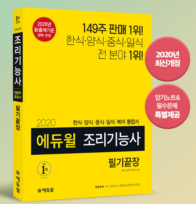 ‘2020 에듀윌 조리기능사 필기끝장’ 수험서는 에듀윌 도서몰, 교보문고, 알라딘, 인터파크 도서, 예스24 등 온오프라인 서점에서 만나볼 수 있다.