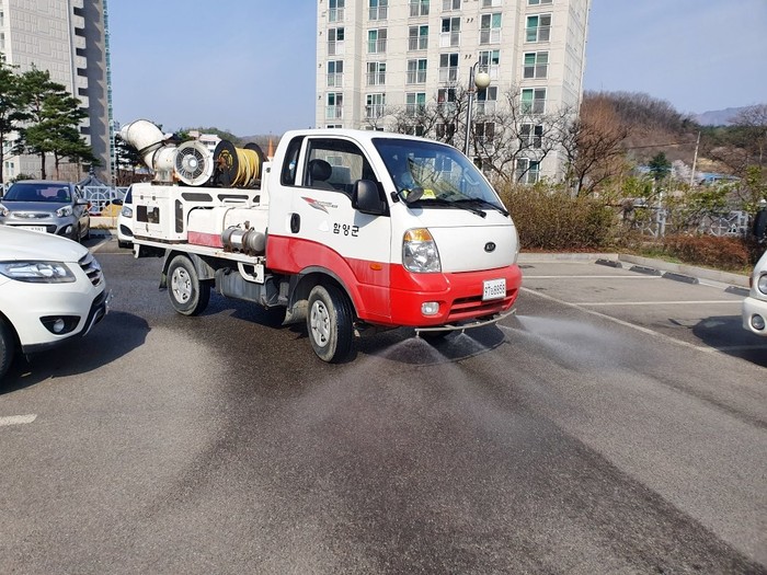 방역에 사용하는 약품은 보건소에 공급하는 바이러스 억제를 위한 전용 약품을 사용하고 함양소방서의 깨끗한 물을 사용함으로 인체에 무해하다고 한다.