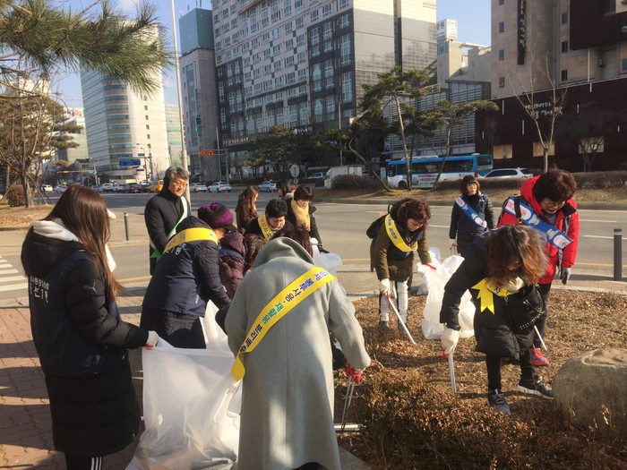 경기 수원시 권선구 권선1동 행정복지센터는 20일 민족 고유의 명절인 설을 맞아 쾌적한 거리 환경을 조성하기 위해 설맞이 일제대청소를 실시했다. 사진은 참여자들이 쓰레기를 수거하는 모습. (사진제공=권선구청)