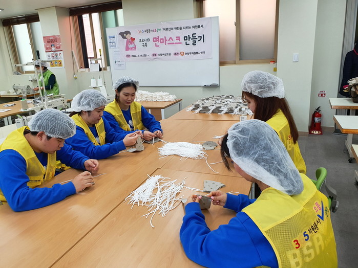 해바라기 봉사단 4기 2조는 최근 서울 관악구 자원봉사센터에서 주관하는 '코로나19 극복 면 마스크 제작' 봉사에 참여했다.