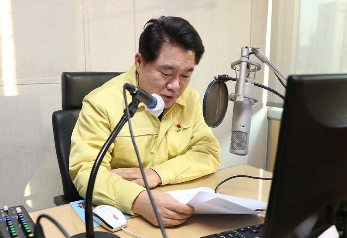 관악구가 지난 4일 신축년(辛丑年) 새해를 맞아 코로나19 확산 방지를 위해 별도의 시무식 없이 청내 아침방송으로 직원 및 구민들과의 업무를 시작했다. 사진은 이날 박준희 구청장이 아침방송으로 새해인사를 전하고 있는 모습. (사진제공=관악구청)