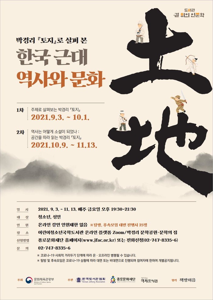우선 오는 11월13일까지 어린이청소년 국학도서관에서는 박경리 작가의 대하소설 ‘토지’를 중심으로 한국 근대 역사와 문화를 살펴본다.