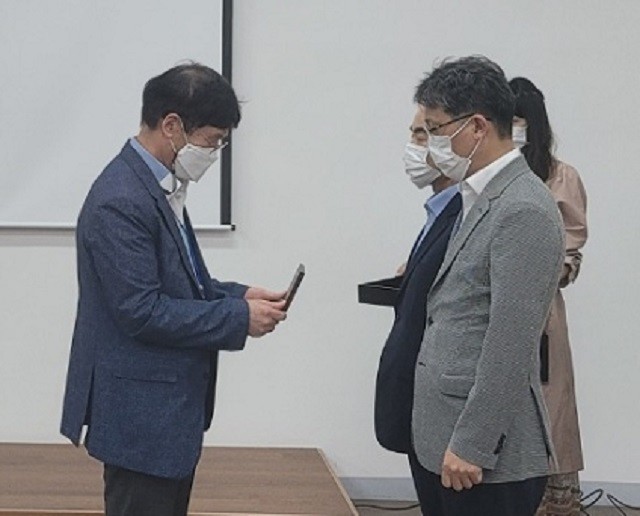 | ▲ 광주광역시 보건환경연구원, ‘2021년도 한국동물위생학회 학술발표대회’ 우수 기관상 구두발표 대상 수상 시상식 / 사진 = 광주광역시 제공 |