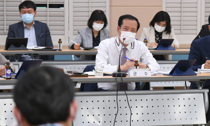 거창군은 지난 5일 군청 대회의실에서 전 부서장 및 읍·면장이 참석한 가운데 군수 주재 10월 확대간부회의 겸 2021년도 신규·특수시책 보고회를 개최했다.