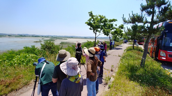 경기 화성시는 17일 만 19세 이상 시민들을 대상으로 화성호의 생태와 매향리의 평화 가치를 전달하기 위해 ‘철새들과 함께하는 화성 기행’ 행사를 개최했다. 사진은 시민들이 필드스코프를 이용해 화성호에서 서식하는 철새를 탐조하는 모습. (사진제공=화성시청)