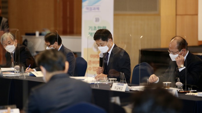 전남교육청이 22일 영암군 소재 호텔현대에서 장석웅 교육감을 비롯해 도교육청 국장 이상 간부와 22개 지역 교육장 등 최소 인원이 참석한 가운데 '전남교육혁신 정책협의회'를 열고 2020년 사업평가 및 2021년 사업 추진 방향을 모색했다. 사진은 장 교육감(오른쪽 두 번째) 발언하는 모습. (사진제공=전남도교육청)