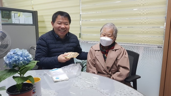 서울 노원구 중계4동에 최근 한 할머니가 17년간 모은 900만원의 성금을 전달해 훈훈함을 안겼다. 이 할머니는 “나라에 진 빚을 조금이라도 갚아야 내 마음이 편할 것 같다”면서 “이 돈이 정말 필요한 곳에 쓰였으면 좋겠다”라고 전했다. 사진은 주민센터 직원과 할머니가 기념촬영을 하는 모습. (사진제공=노원구청)
