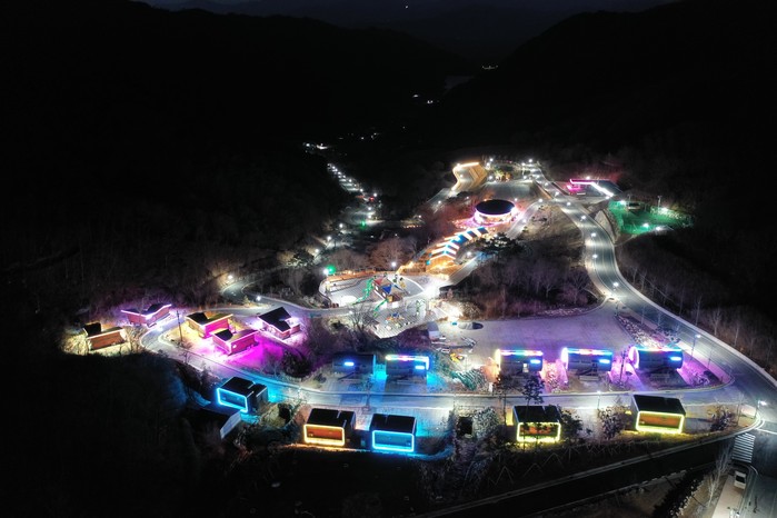 대봉캠핑랜드 경관조명시설은 오는 설날전까지 일몰부터 1~2시간 정도 시간을 정해 시설 준공에 따른 설비 안정성 점검 등 시범운영 기간을 진행할 예정이다.