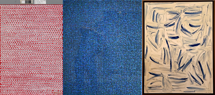 | ▲ 고차분(Chabun Go), 사랑의 하모니(Harmony of love), 116.8×80.3cm, acrylic on canvas, ~ ,김태호(Taeho Kim) 내재율 91.8×78cm acrylic on canvas 2008, 이우환(UFan Lee), 동풍(East Winds), 130.6x97.1cm, pigment on canvas, 1984 |