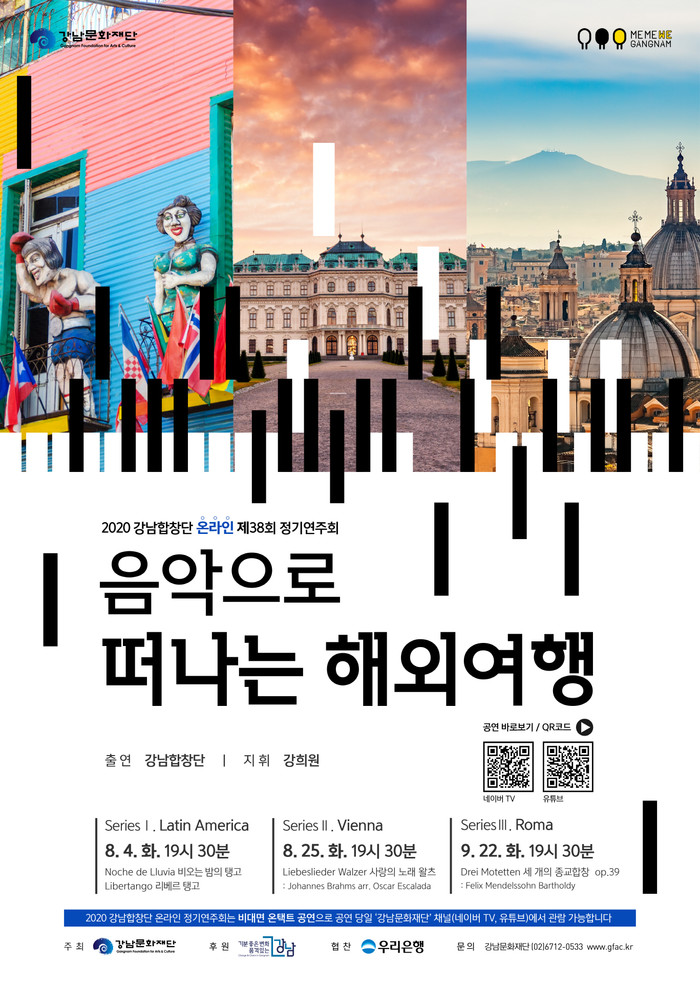 이번 ‘음악으로 떠나는 해외여행’ 공연 영상은 총 3편으로 일정에 따라 순차적으로 공개되며, 8월4일부터 강남문화재단 홈페이지를 통해 무료로 시청할 수 있다.