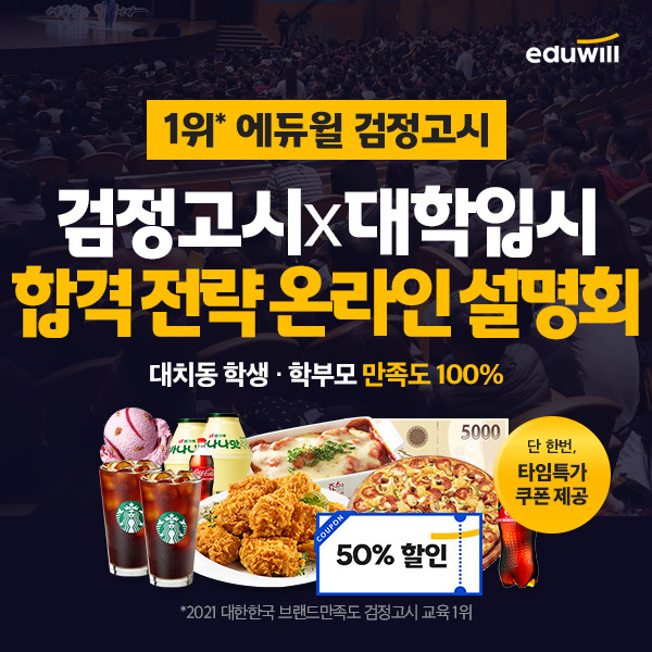 더불어 에듀윌 검정고시만의 검정고시X대입 합격 전략과 검정고시와 대입 합격에 대한 FAQ도 진행될 예정이다.