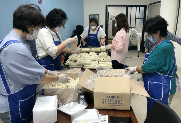 서울 서대문구 연희동 마봄협의체는 최근 지역내 어려운 이웃을 위해 ‘사랑愛 가래떡 나눔 행사’를 추진했다. 지역 주민들이 십시일반 모은 쌀로 만들어진 가래떡은 100가구에 전달됐다. 사진은 마봄협의체 위원들이 이웃들에게 전할 가래떡을 포장하고 있는 모습. (사진제공=서대문구청)