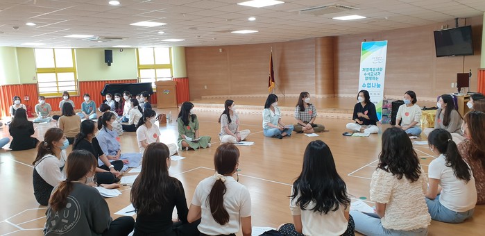 전남교육청이 이달부터 오는 10월까지 8회에 걸쳐 여수, 순천, 해남, 완도 등 4권역으로 나눠 유치원 저경력 교사를 대상으로 '수석교사가 함께하는 수업나눔'을 운영한다. 수업나눔은 3년 이하 저경력교사의 수업역량 강화와 교실수업 개선을 목적으로 마련됐다. 사진은 수업나눔이 진행되는 모습. (사진제공=전라남도교육청)