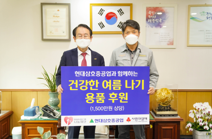 현대삼호중공업(대표이사 김형관) 임직원이 지난 5일 코로나19와 무더위에 지친 저소득층 가정을 지원하기 위해 ‘건강한 여름나기 꾸러미’ 150박스(1,500만원 상당)을 전남 사회복지공동모금회를 통해 목포시에 지정기탁했다.