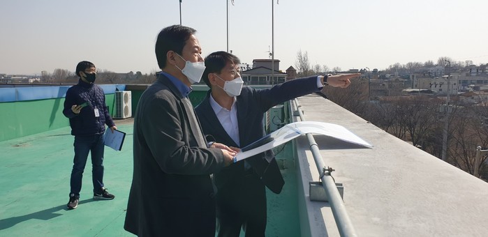 경기 수원시 권선구는 17일 서둔·구운 일대 주요 현안인 서울농대 수목원 도로, 일월초 안전통학로 옹벽 현장 등을 꼼꼼히 점검했다. 사진은 서경보 구청장(가운데)과 담당 부서장이 함께 현장을 점검하고 있는 모습. (사진제공=권선구청)