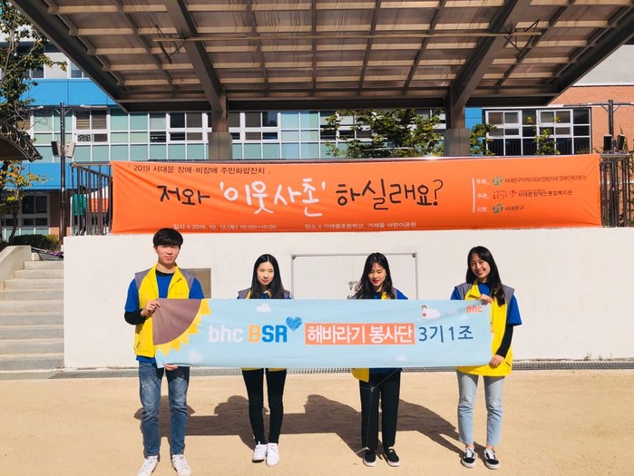 대학생 자원봉사단체인 ’해바라기 봉사단‘ 3기 1조는 지난 12일 서울시 서대문구에 위치한 가재울초등학교에서 열린 올해 서대문 장애·비장애 주민화합잔치 '저와 이웃사촌 하실래요?' 현장에서 행사 진행을 지원했다.