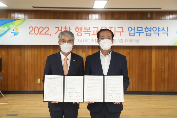 경상남도교육청(교육감 박종훈)과 거창군(군수 구인모)은 14일(목) 오후 거창교육지원청 대회의실에서 2022년 행복교육지구 추진을 위한 업무협약식을 가졌다.