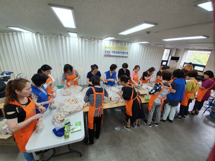 서울 성동구 송정동 지역사회보장협의체는 최근 복지사각지대 소외계층을 위한 명절음식 나눔행사를 개최했다. 이날 위원들은 직접 담근 물김치, 불고기, 송편, 한과 등의 명절음식을 준비해 홀몸노인 등에 전달했다. 사진은 명절음식을 만드는 모습. (사진제공=성동구청)