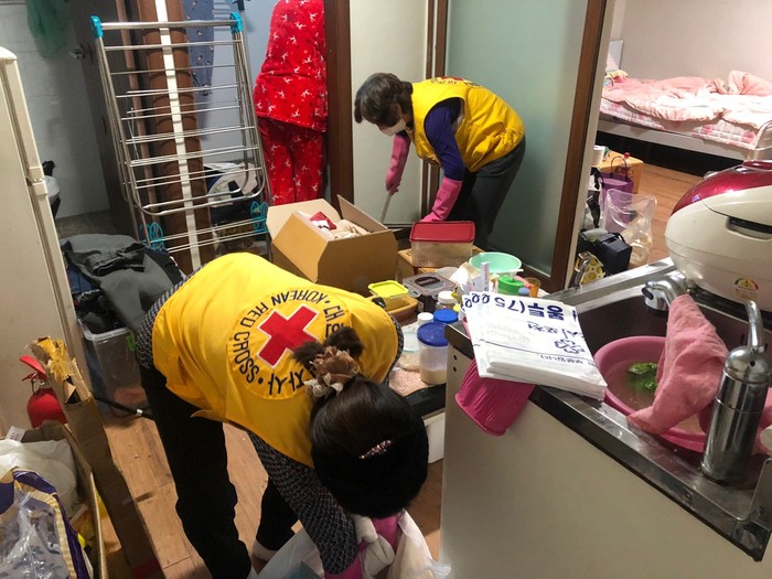 경기 포천시 소흘읍 대한적십자사 솔모루봉사회는 최근 중증장애인 사례관리대상 가정을 방문해 주거환경개선 활동을 펼치고, 말벗봉사를 실시했다. 사진은 회원들이 집안 곳곳을 청소하고 있는 모습. (사진제공=포천시청)
