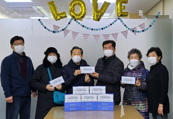 서울 서대문구 북가좌1동 마봄협의체가 최근 동주민센터에서 평소 몸이 좋지 않은 노인들을 중심으로 선정한 지역내 저소득 노인 가구 20곳에 '저주파 자극기'를 선물했다. 사진은 전달식에서 관계자들이 기념촬영을 하는 모습. (사진제공=서대문구청)
