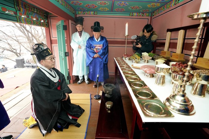 경기 광주시가 27일 병자호란 당시 순국한 장군들을 기리는 '정충묘 제향'을 거행했다. (사)경기광주전통전례보전회가 주관한 이날 제향에는 광주문화원 회원 및 유림, 시민 등 200여명이 참석했다. 사진은 신동헌 시장이 초헌관을 올리는 모습. (사진제공=광주시청)