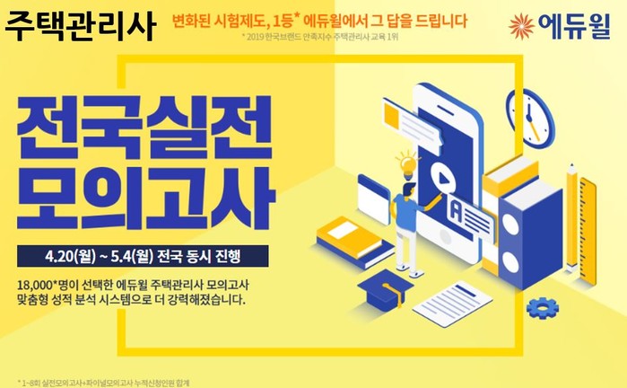 [시민일보 = 황혜빈 기자] 종합교육기업 에듀윌(대표 박명규)은 주택관리사 수험생을 위해 합격콘텐츠 제4회 전국실전 모의고사를 제공한다고 밝혔다.