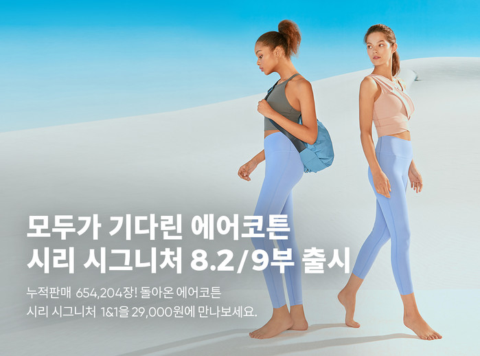 새롭게 출시되는 '에어코튼 시리 시그니처 레깅스'는 탄탄한 바디라인을 완성해 체형커버에도 도움을 주는 제품이다.
