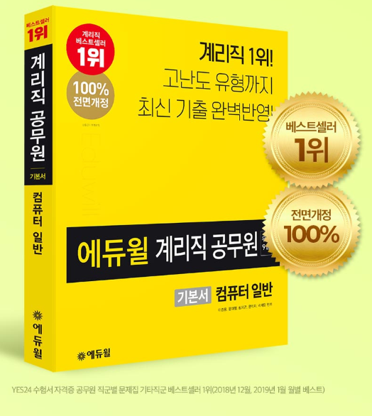 [시민일보 = 여영준 기자] 종합교육기업 에듀윌(대표 박명규)이 발간한 ‘2020 에듀윌 우정9급 계리직공무원 기본서 컴퓨터일반’ 교재가 온라인서점 예스24의 기능직 10급 부문 베스트셀러 1위를 차지했다.