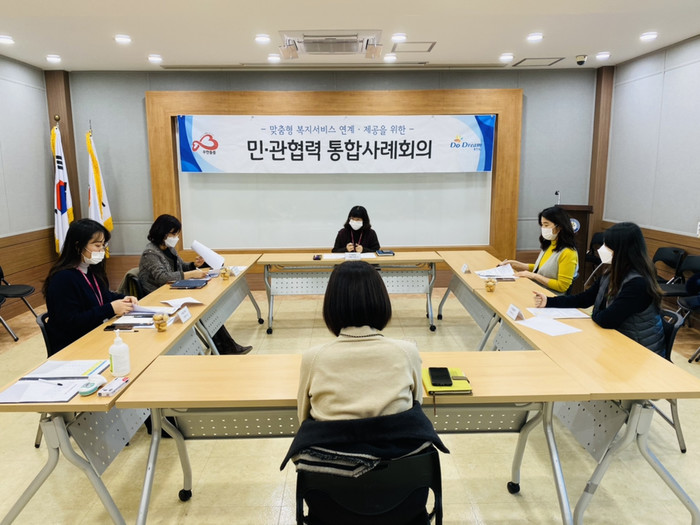 경기 동두천시 무한돌봄센터가 최근 맞춤형 복지서비스 연계 제공을 위한 민·관협력 통합사례회의를 개최, 중부지방고용노동청의정부지청, 불현동행정복지센터, 시청 사회복지과 아동복지팀 실무자들과 함께 차상위 한부모 2가구의 복지욕구 해소 및 지원 방안을 논의했다. 사진은 회의 진행 모습. (사진제공=동두천시청)