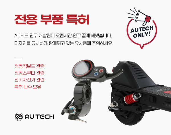 한편, AU테크에서는 이륜차계기판 특허 출원도 완료해 전동스쿠터에 사용되는 이륜차용 계기판을 전기자전거에 최초로 도입, 접목한 기술을 확보해 특허 등록을 완료했다. 이는 자사의 자체적인 키박스와 계기판을 일체형으로 배터리 잔량, 현재 속도 등을 명확하게 파악 가능한 것으로, 핸들 바에 여유 공간이 생겨 다른 액세서리 거치가 편리해졌다.