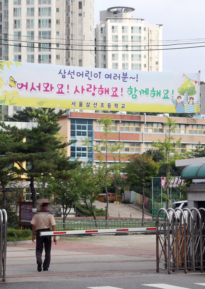 코로나19 지역 감염 확산으로 서울 성북구·강북구와 경기 용인시 전체, 경기 양평군 일부 소재 유치원·학교가 2주간 원격 수업을 하기로 한 18일 오전 서울 성북구 삼선초등학교가 썰렁한 모습이다.