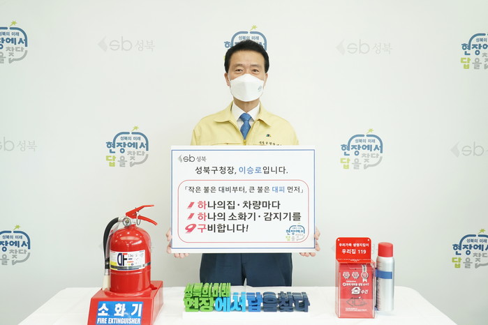 [시민일보 = 홍덕표 기자] 이승로 성북구청장이 최근 화재로 인한 인명 피해를 줄이기 위해 각 가정에 주택용 소방시설 설치를 권장하는 '119 릴레이 챌린지'에 동참했다.
