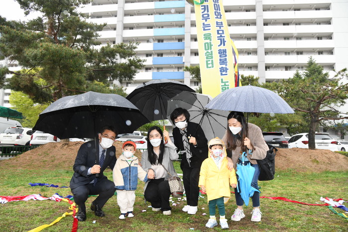 오승록 서울 노원구청장은 12일 상계9동에서 열린 '공동육아방' 개소식에 참석했다. 공동육아방은 면적 94㎡에 영유아 신체놀이방, 블록놀이방 등을 갖추고 있다. 사진은 개소식에 참석한 오 구청장(왼쪽)이 관계자들과 기념촬영을 하는 모습. (사진제공=노원구청)