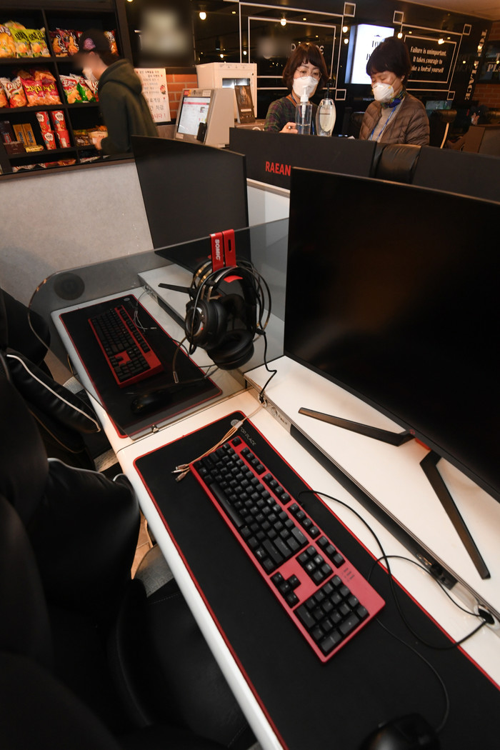 24일 오후 경기 수원시의 한 PC방에서 경기도 공무원들이 신종 코로나바이러스 감염증(코로나19) 확산을 막기 위한 '밀접이용 제한' 행정명령 현장 점검을 하고 있다. 경기도는 지난 18일 밀접이용 제한 행정명령을 내린 후 23일까지 계도 기간을 거쳤다.