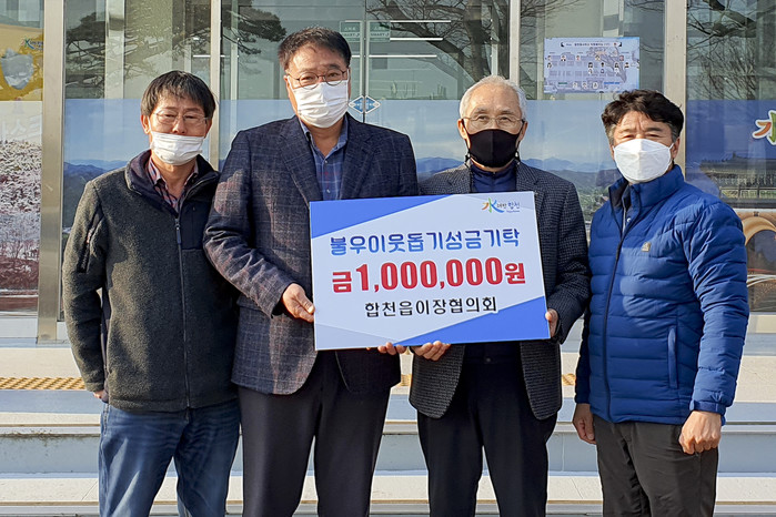 합천읍 이장협의회는 9개 법정리, 22개 행정리에 이장 22명으로 구성되어 각 마을 주민들과 행정을 연결하는 다리 역할을 해오고 있으며 금년은 경제적으로 어려운 실정에도 불구하고 합천읍 이장협의회 회원들이 하나 된 마음으로 모금한 성금으로 더욱 큰 의미가 있다.