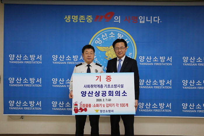 이번 양산상공회의소로부터 전달받은 소화기와 단독경보형감지기 100세트는 저소득층, 독거노인· 장애인 세대의 주택화재예방을 위해 설치할 예정이다.
