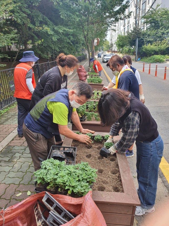 인천 서구 검단동 행정복지센터는 최근 추석을 맞아 검단동 청사 주변 가을꽃 1000본을 심고 통행량이 많은 거리를 중심으로 쓰레기 수거와 제초작업을 하는 등 환경정비 활동을 펼쳤다. 사진은 이날 봉사자들이 가을꽃을 심고 있는 모습.(사진제공=서구청)
