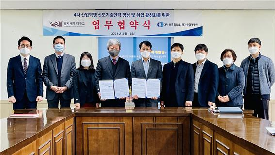[시민일보 = 고수현 기자] 웅지세무대학교는 지난 18일 대한상공회의소 경기인력개발원과 ‘4차 산업혁명 선도기술인력 양성 및 취업 활성화를 위한 업무협약식을 가졌다고 밝혔다.