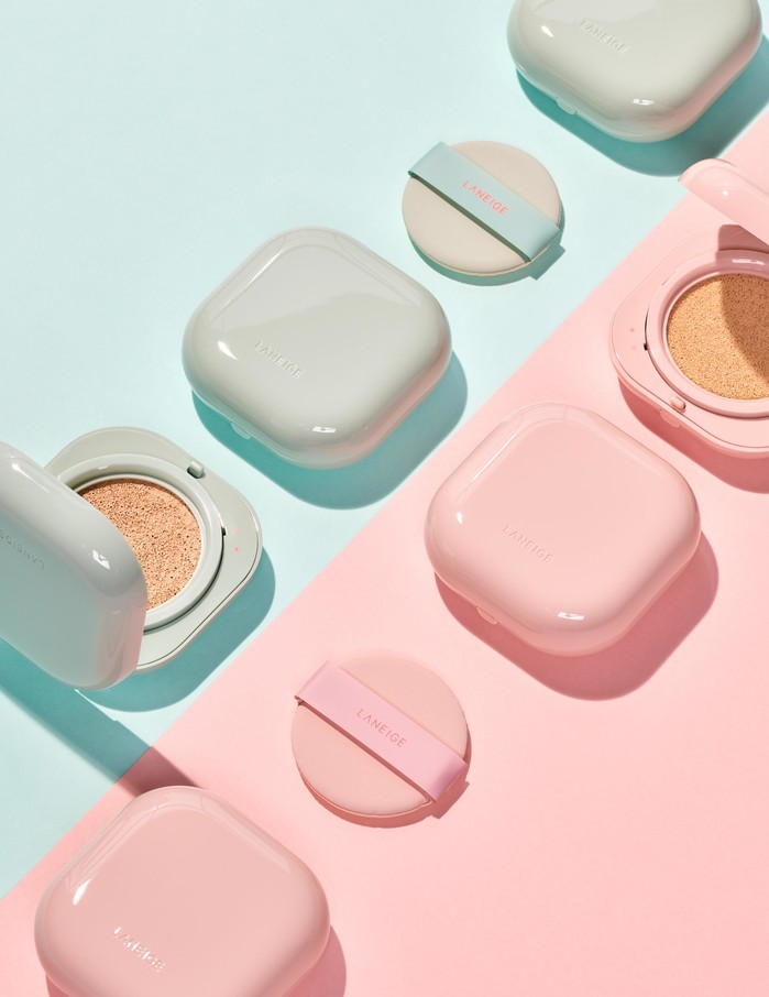 네오 쿠션은 민트색의 ‘매트’와 핑크색의 ‘글로우’로 출시됐으며, 두 제품 모두 아모레퍼시픽 쿠션 최초로 블루라이트 차단 기능을 갖춰 잦은 휴대전화, PC 사용 시 피부에 영향을 줄 수 있는 블루라이트로부터 피부를 보호한다.