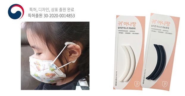 이러한 이유로 마스크 통증을 완화시켜주는 많은 아이디어 상품들이 출시되고 있지만 그중에서도 특허청에 특허, 디자인, 상표 출원(특허출원 30-2020-0014853)까지 완료 한 귀아나팡 아이디어 상품이 주목을 받고 있다.